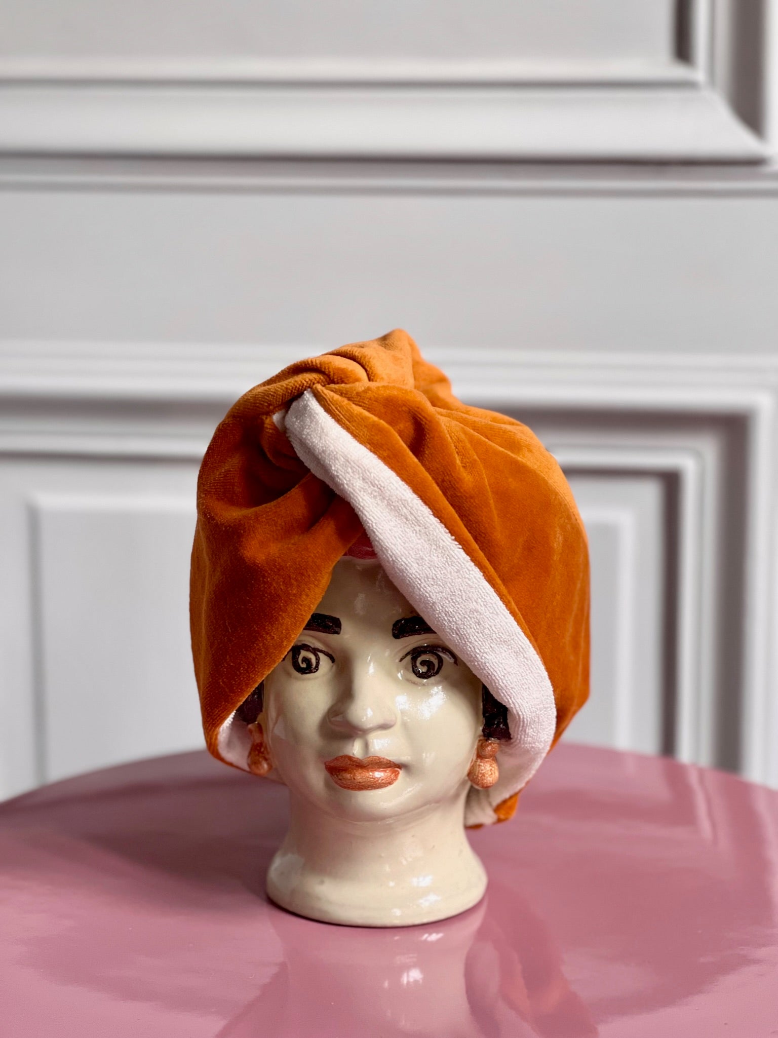 Ce turban en velours de coton bio et éponge ultra absorbant a une fonctionnalité dédoublée : après le shampoing, il permet de sécher les cheveux en douceur et avec style et entre les shampoings, le turban en velours préserve les cheveux de l’humidité pour celles qui sont sujettes aux frisottis ou qui veulent tout simplement protéger leurs cheveux des éclaboussures !