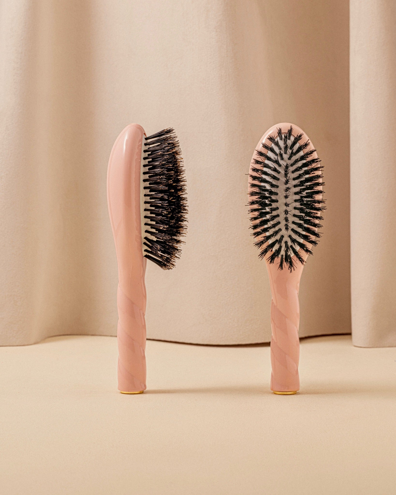 Même en format réduit, la Petite Brosse à cheveux rose poudré offre une efficacité comparable à celle des plus grandes. Ses poils de sanglier, soigneusement sélectionnés, procurent un soin profond au cuir chevelu. Grâce à la kératine présente dans ses fibres, cette brosse en poils de sanglier répartit le sébum uniformément des racines jusqu’aux pointes, pour des cheveux nourris et éclatants de santé.