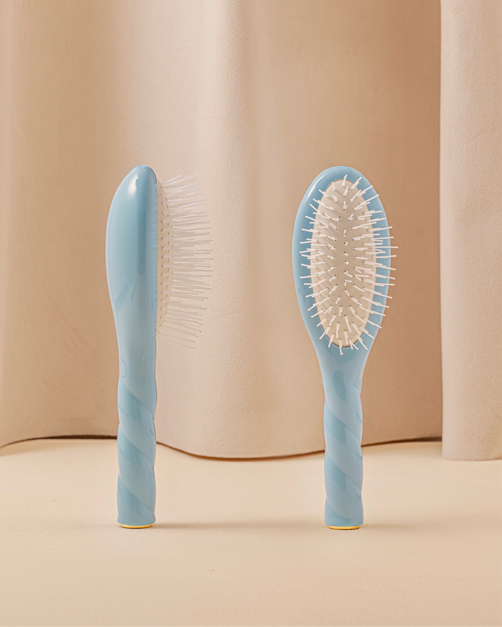 La brosse massante N.04 : cette brosse à cheveux est à privilégier si vous avez les cheveux bouclés fins ou un cuir chevelu sensible car ses picots sont plus souples.